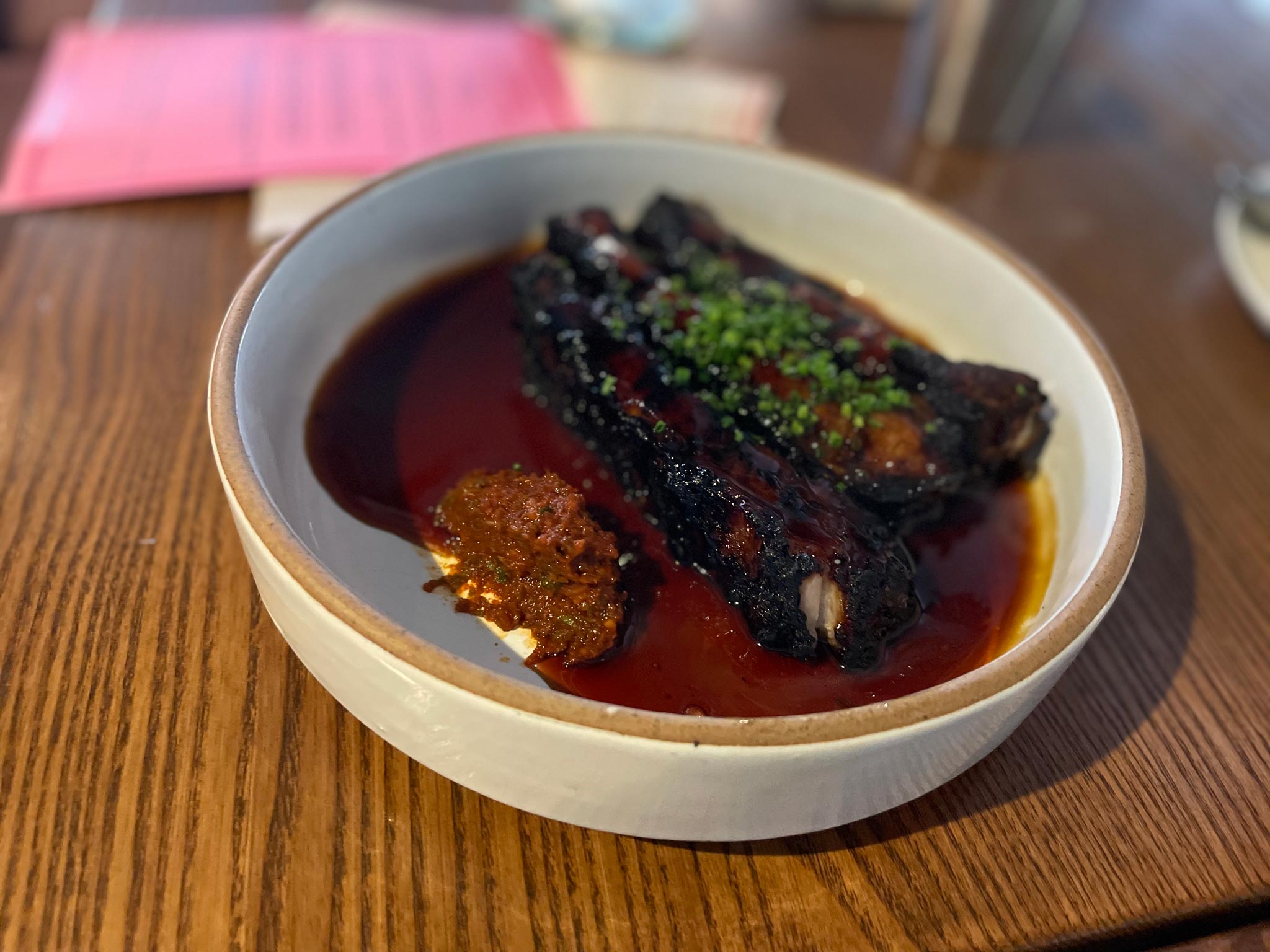 This has a beautiful, intoxicating smell. I love the crispiness of the crust and how succulent it is on the inside. That spring onion kimchi elevates the perfectly cooked meat. It's one of those dishes that begs the use of hands over utensils, and I'm determined to get the most out of these ribs. It's definitely finger licking good.