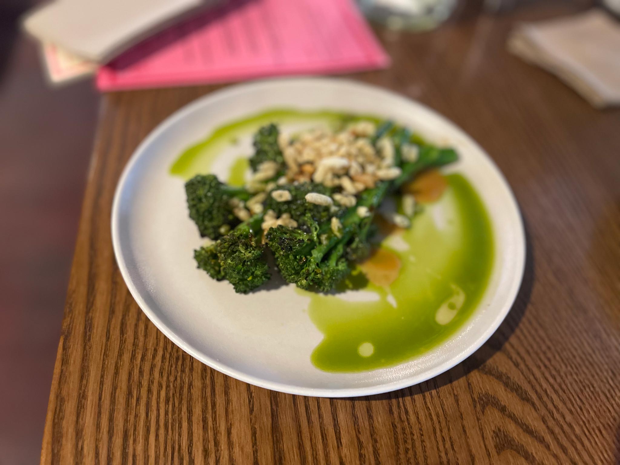 There's a lovely crunch from the puffed rice. I've seen this vegetable done with almonds, but using rice is more on point for this style of cuisine. The sauce is light and doesn’t clash with the wagyu sauce.