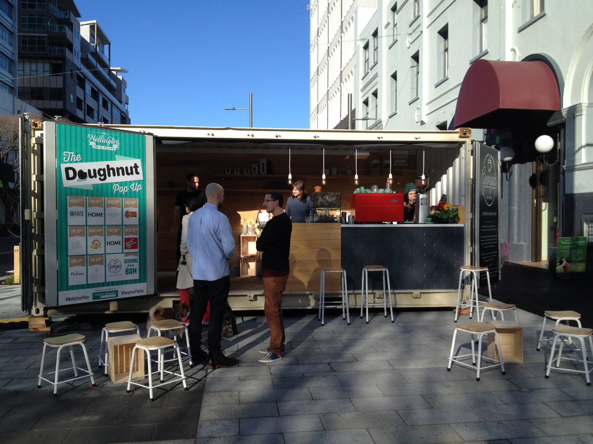 The operation has been so successful that they've very recently opened up another shipping container on the corner of Dixon and Victoria Streets. Though the coffee is much the same, Georgia, the cafe, is serving freshly made limited edition doughnuts for the duration of Wellington on a Plate. Each weekday, a variety of doughnuts with interesting and quirky flavours are provided from various local bakeries.
