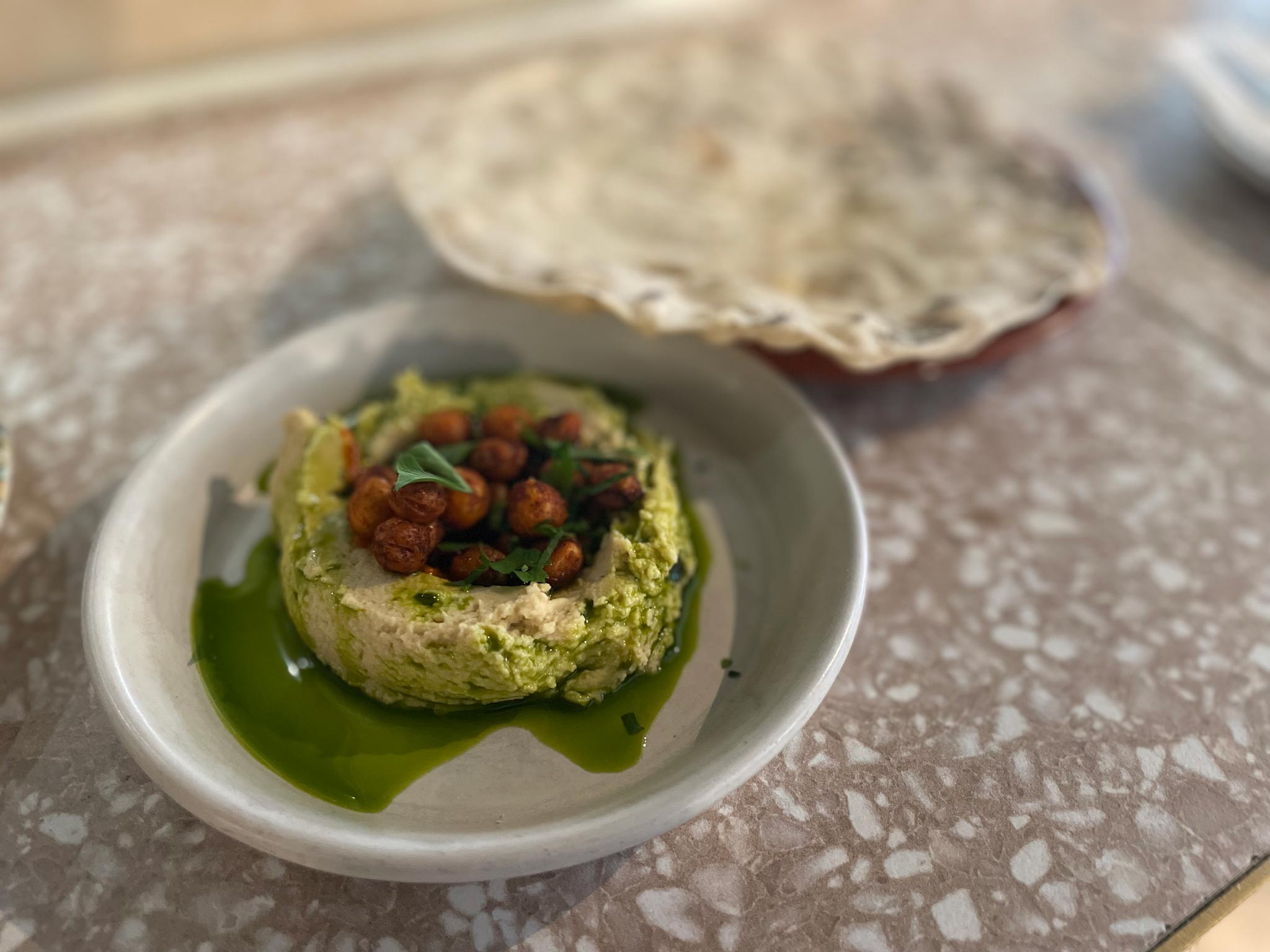 The pita bread is warm to the touch and has some flavour from sitting on the charcoal fire for a few seconds. The hummus is definitely homemade and I love the fried chickpeas on top that give it some crunch and texture.