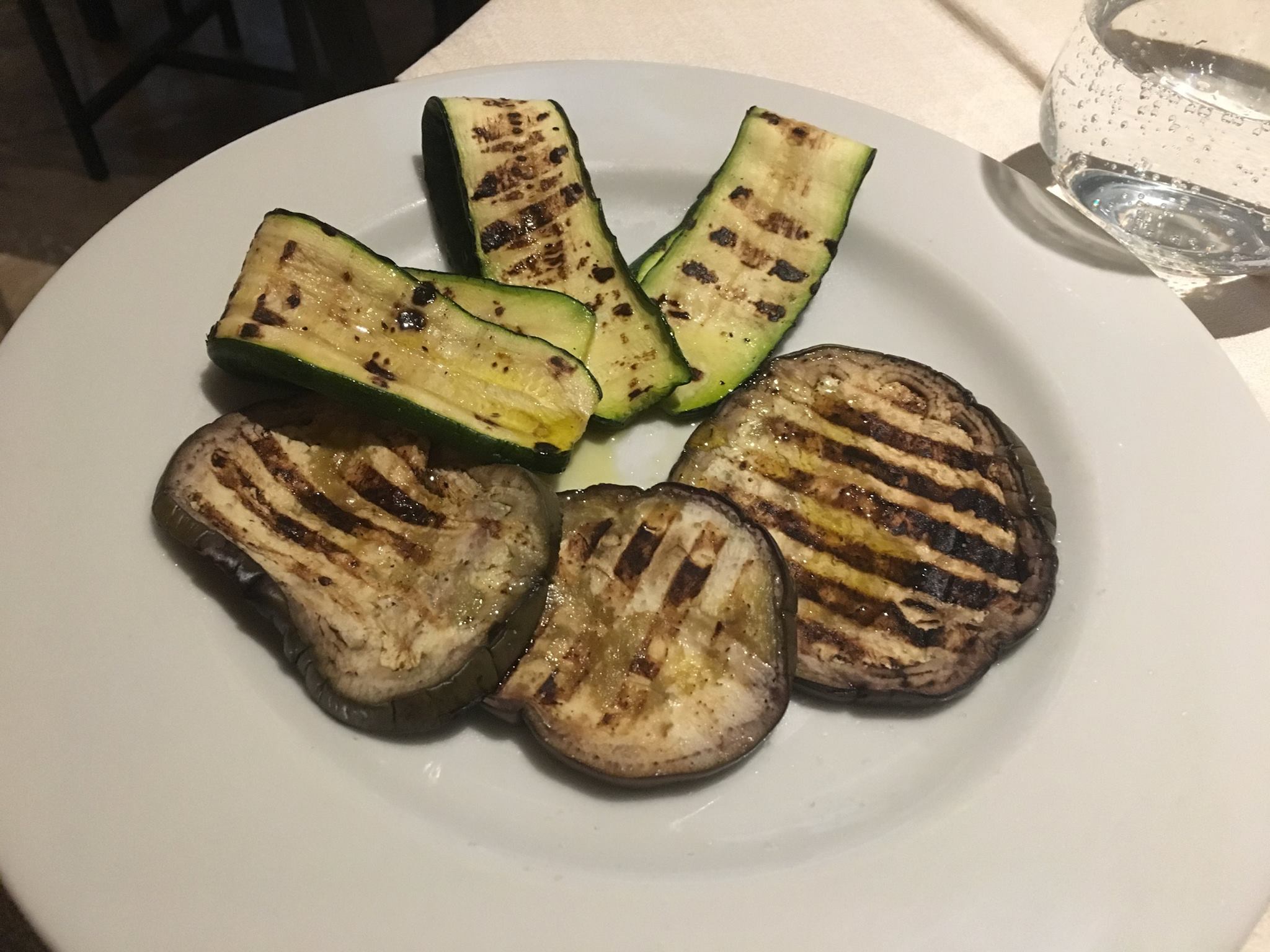 The vegetables are drizzled generously with olive oil, and it's damn good olive oil because I can actually taste the olives. It's easy to see how good the produce is in Italy; there's lots of flavour in the zucchini and eggplant, as opposed to tasting like water.