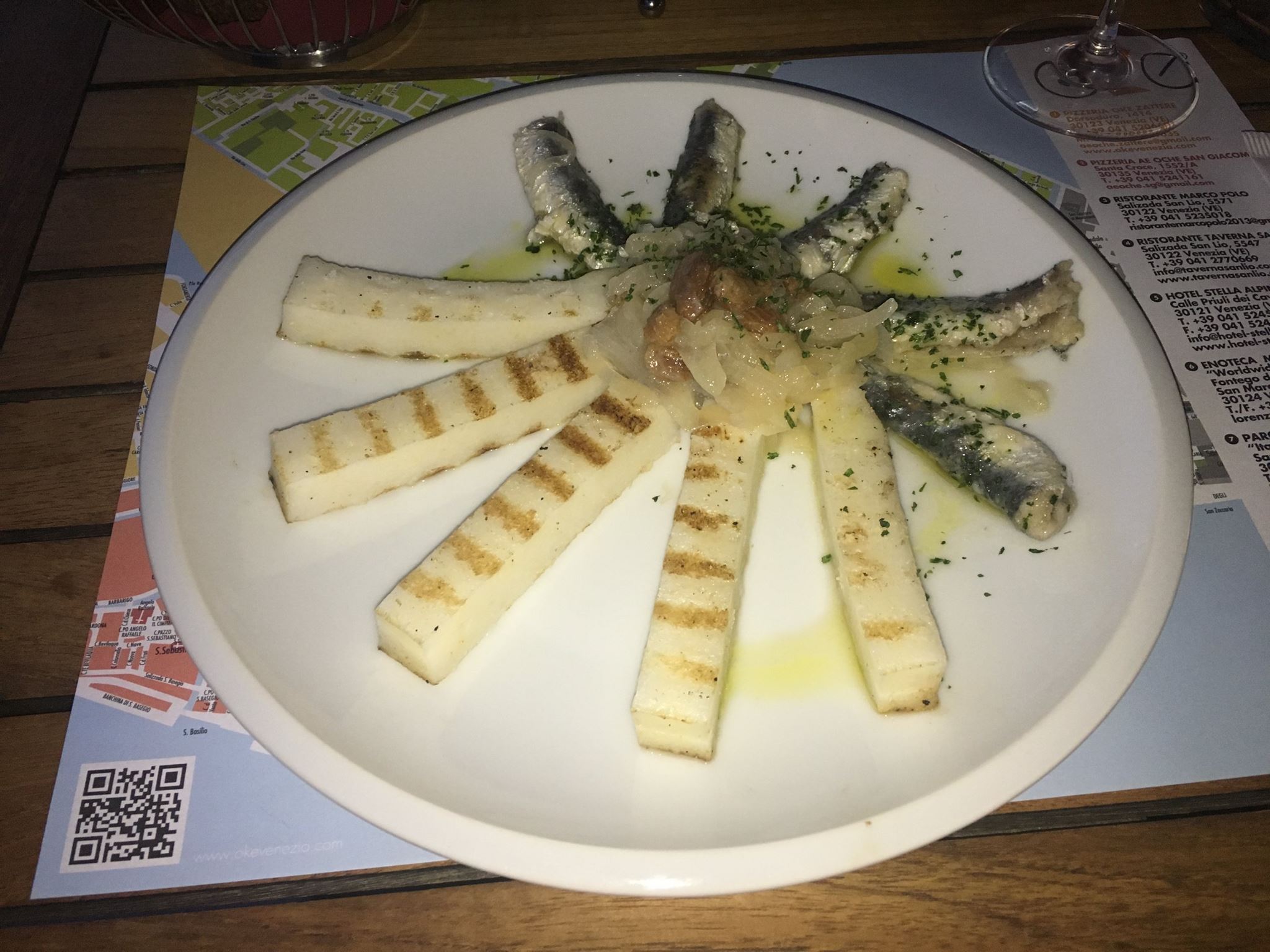 Venice isn't known for a particular dish per se, but like Como, their seafood is well renown. This particular restaurant I've come across has sardines and polenta "Venice style" so I give it a go. It's in the middle of Zattere, which is very popular with tourists wanting to catch the sunsets in Venice.