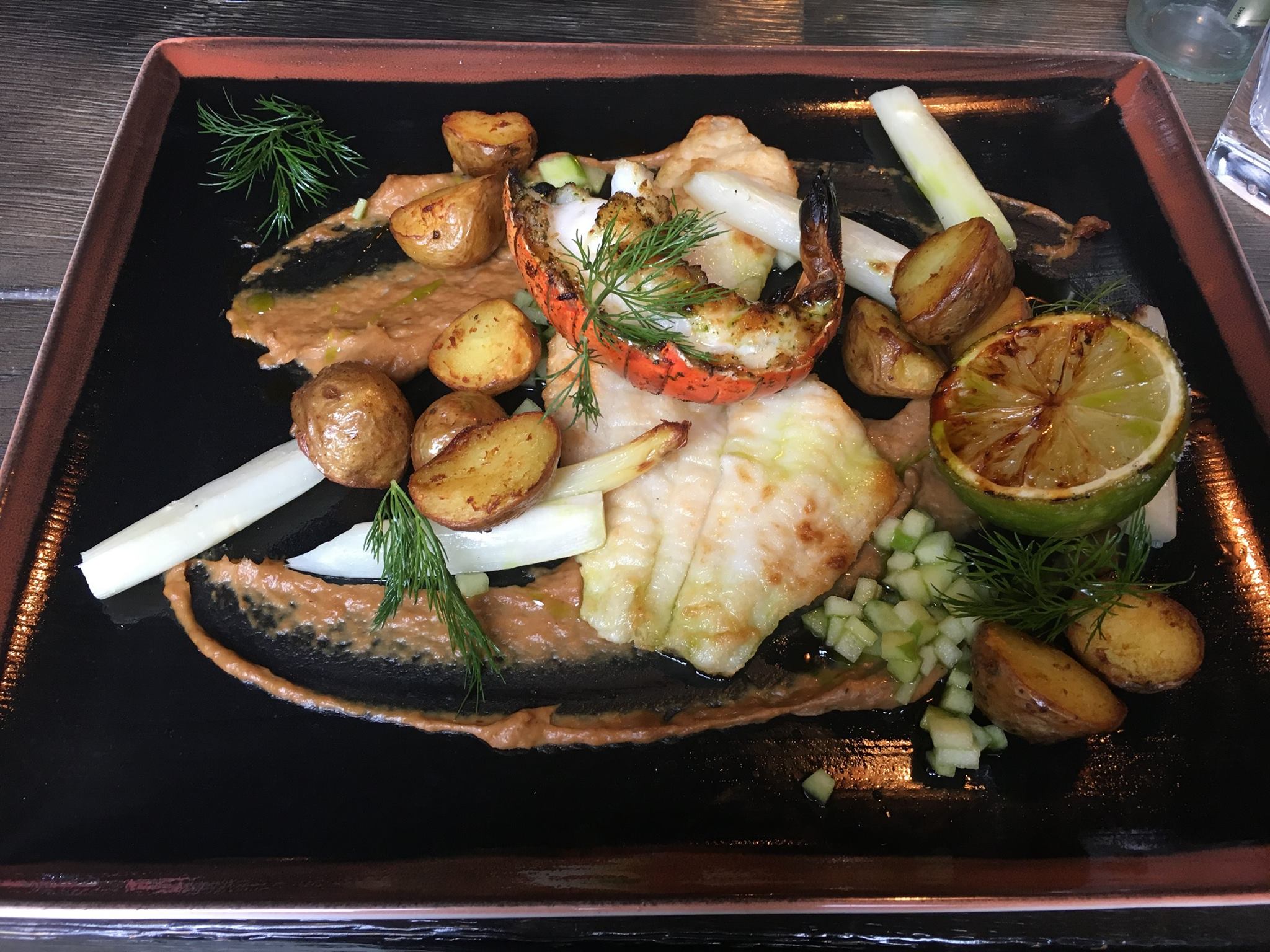 Plaice is very common here. It's a simple fish, much like the New Zealand snapper, with a white, tender flesh. The lobster is solid as always, a rich, chunky piece of meat, with natural sweetness and saltiness. A few drops of the lime over the seafood and the dish is lip-smackingly good.
