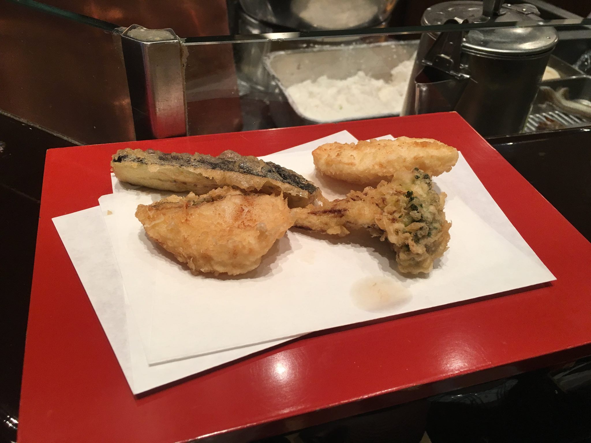 The next batch arrives. The food is served slowly so that they remain hot and crispy, and it doesn't go soggy in between. There's also a tempura fish tail which I forgot to take a photo of; that's how delicious the food was.