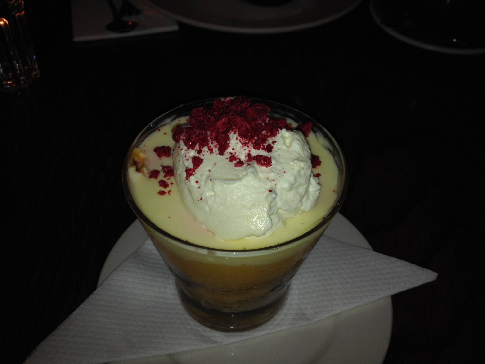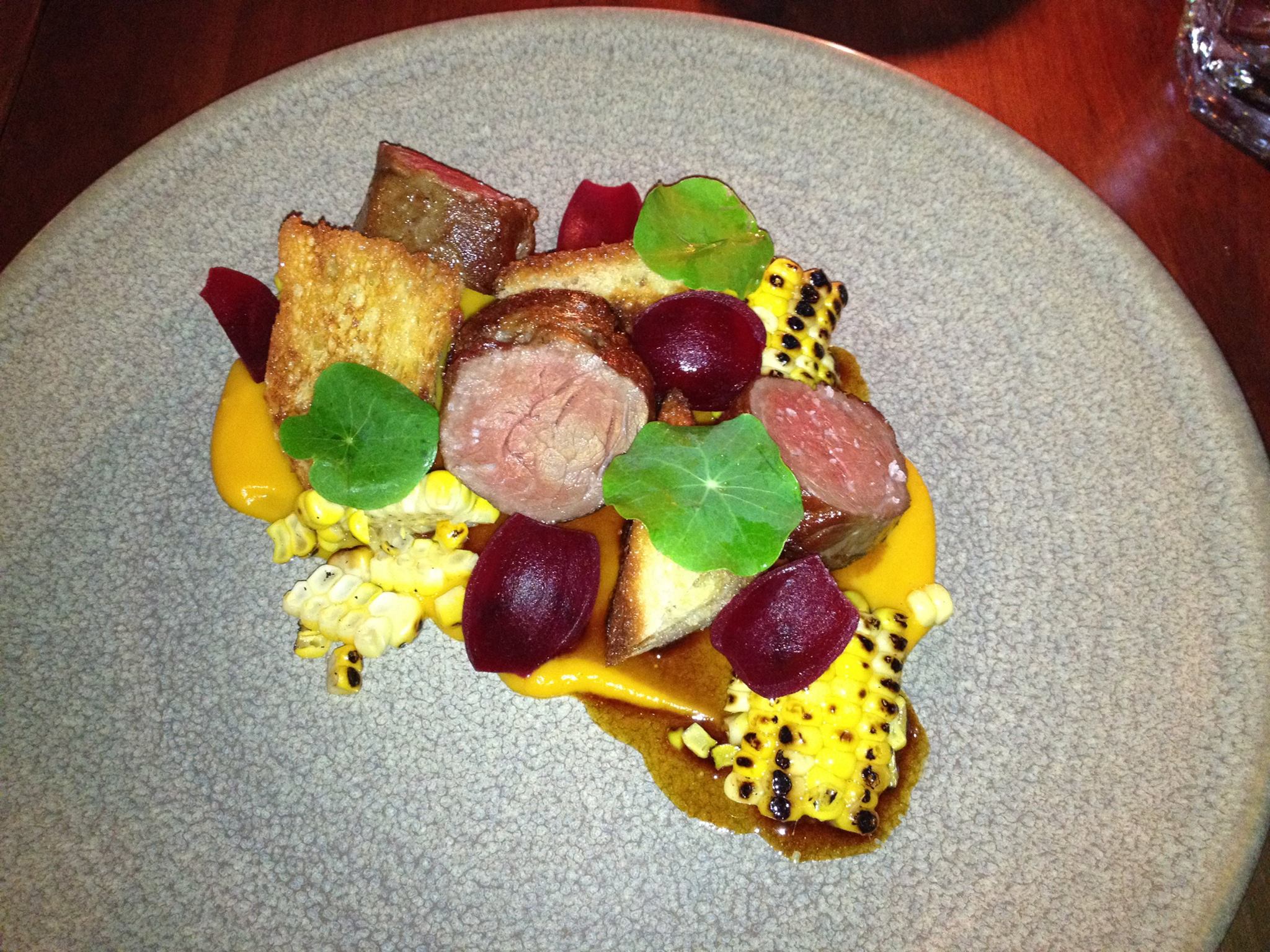 Really good. The beef is well respected and definitely the hero of the dish, with the accompaniments highlighting the savoury and sweetness elements on the plate. Again, great summer feel with the corn and picked onions. Everything has been thought about carefully and works well together. The meat is perhaps a smidgen dry, but the juiciness of the corn and the excellent wine match, a pinot noir, more than makes up for this.