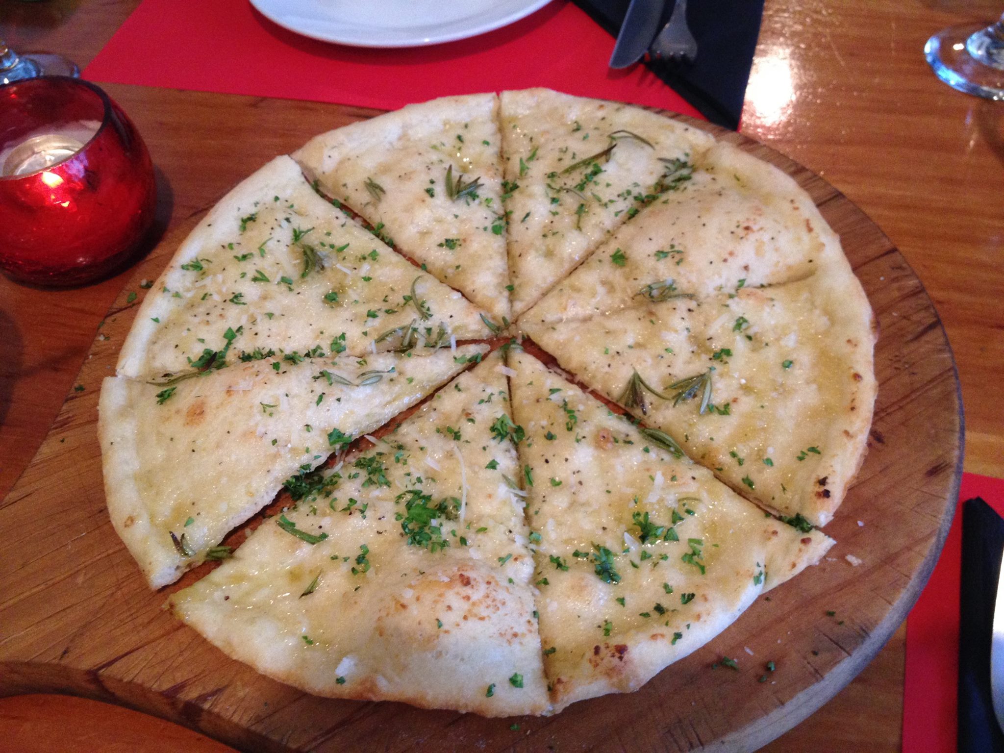 The pizza bread is simple but full of that wonderful garlic and olive oil flavour. That nice sprinkle of rosemary really gives it a freshness that lifts it from ordinary to delightful.