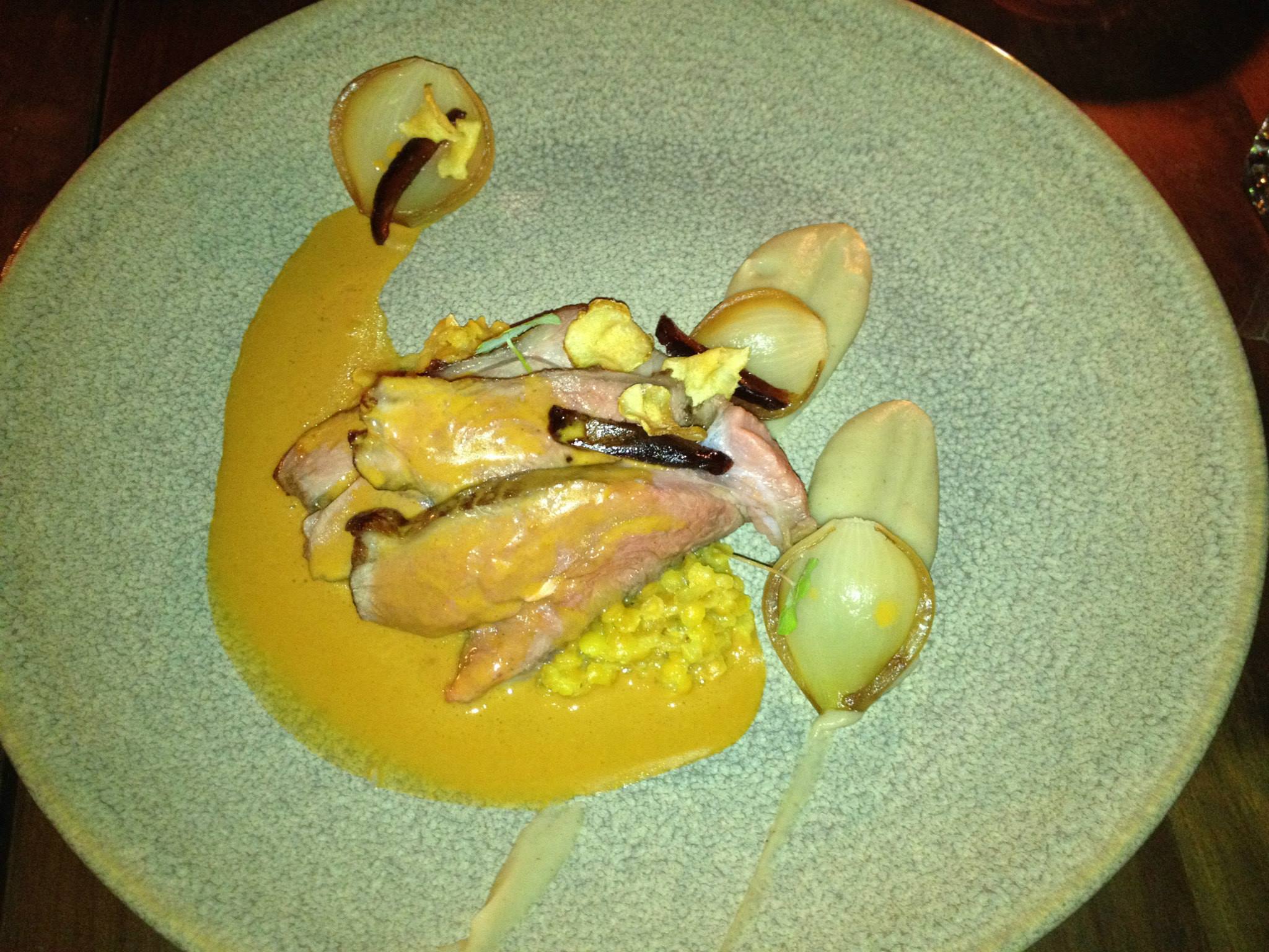 With smooth Jerusalem artichoke, confit dates, lentils and Lot Eight olive oil refined sauce