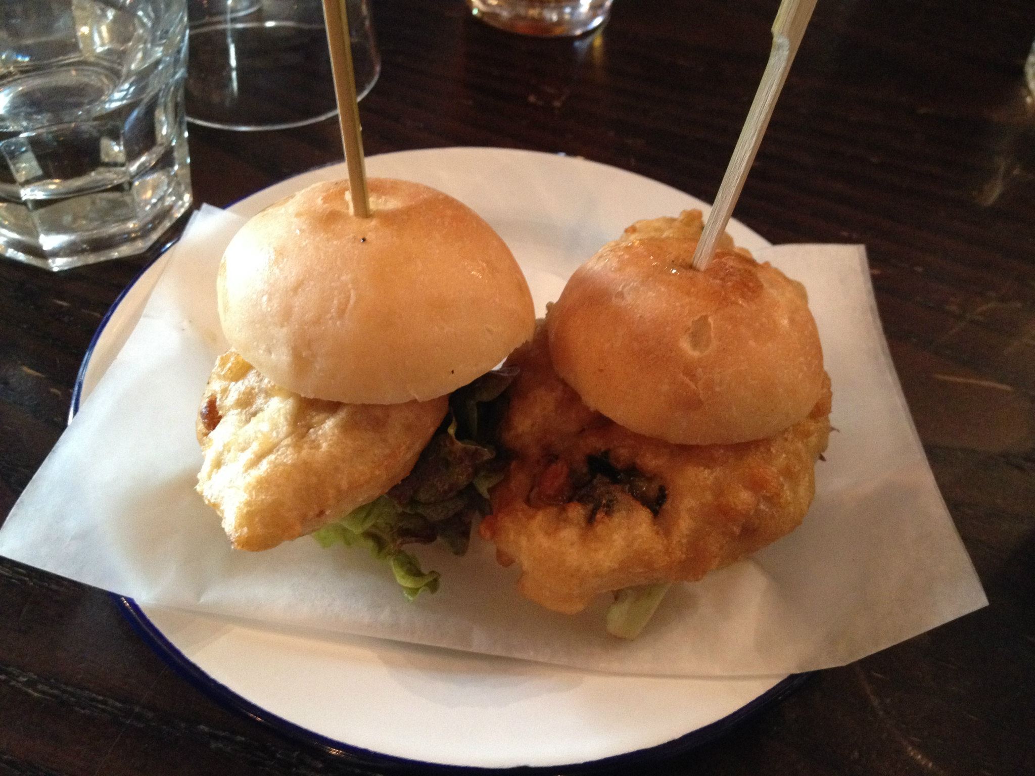It was okay, I guess. Nothing in the burger was particularly outstanding, though the popcorn shrimp was quite nice, but it did give the burger a lot of height which made it a little difficult to eat. There wasn't a strong sauce to bind all the flavours together - my first bite sent a deluge of white sauce onto the wooden board, so maybe that's why it was missing something. It was only until I read the description that I realised that there should have been a chipotle BBQ sauce. I thought the bun was very average. The burger was nice, just not very inspiring. It really lacked a wow factor.