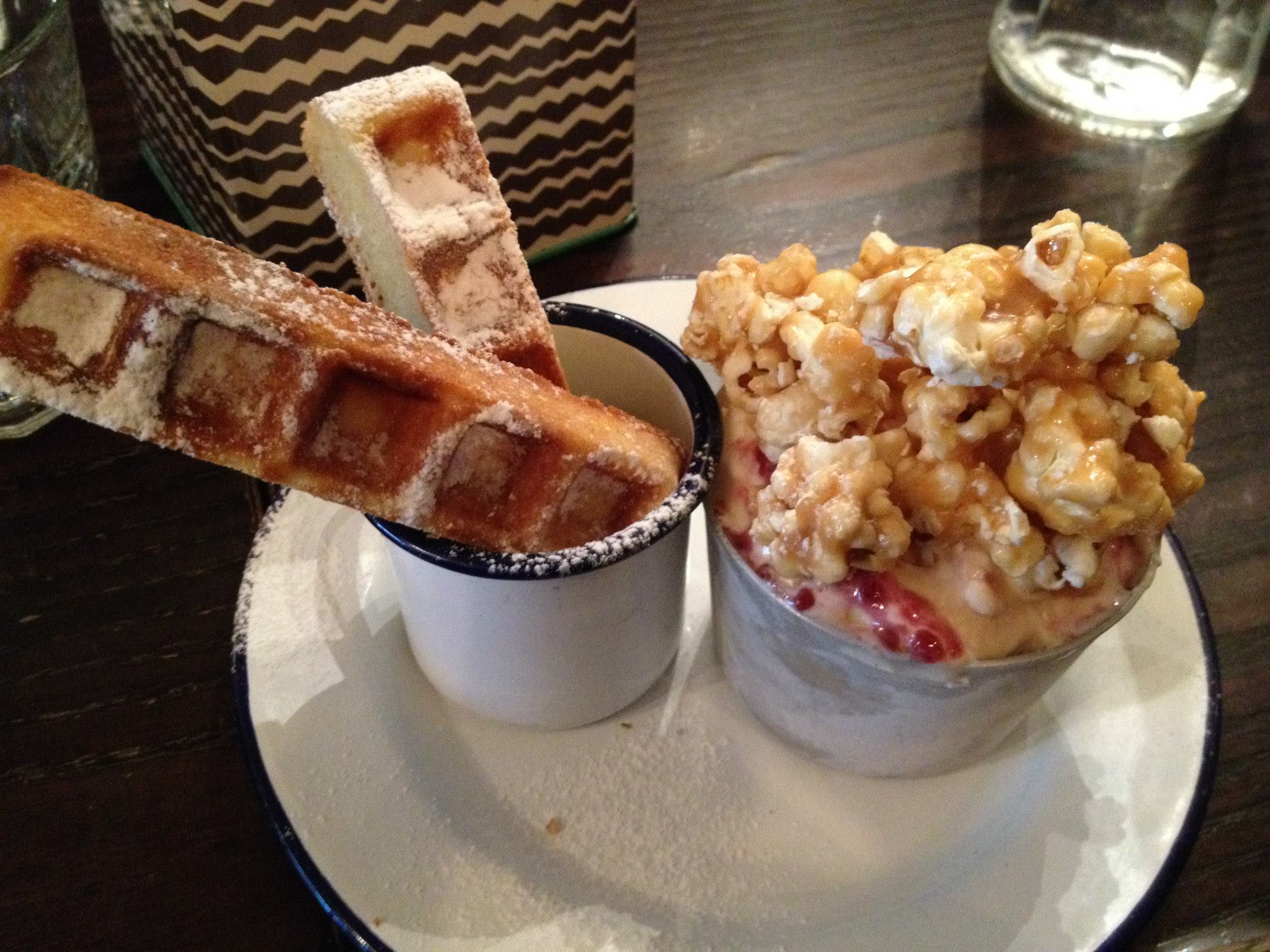 With salted caramel popcorn, waffle lady fingers and Whittaker's sauce