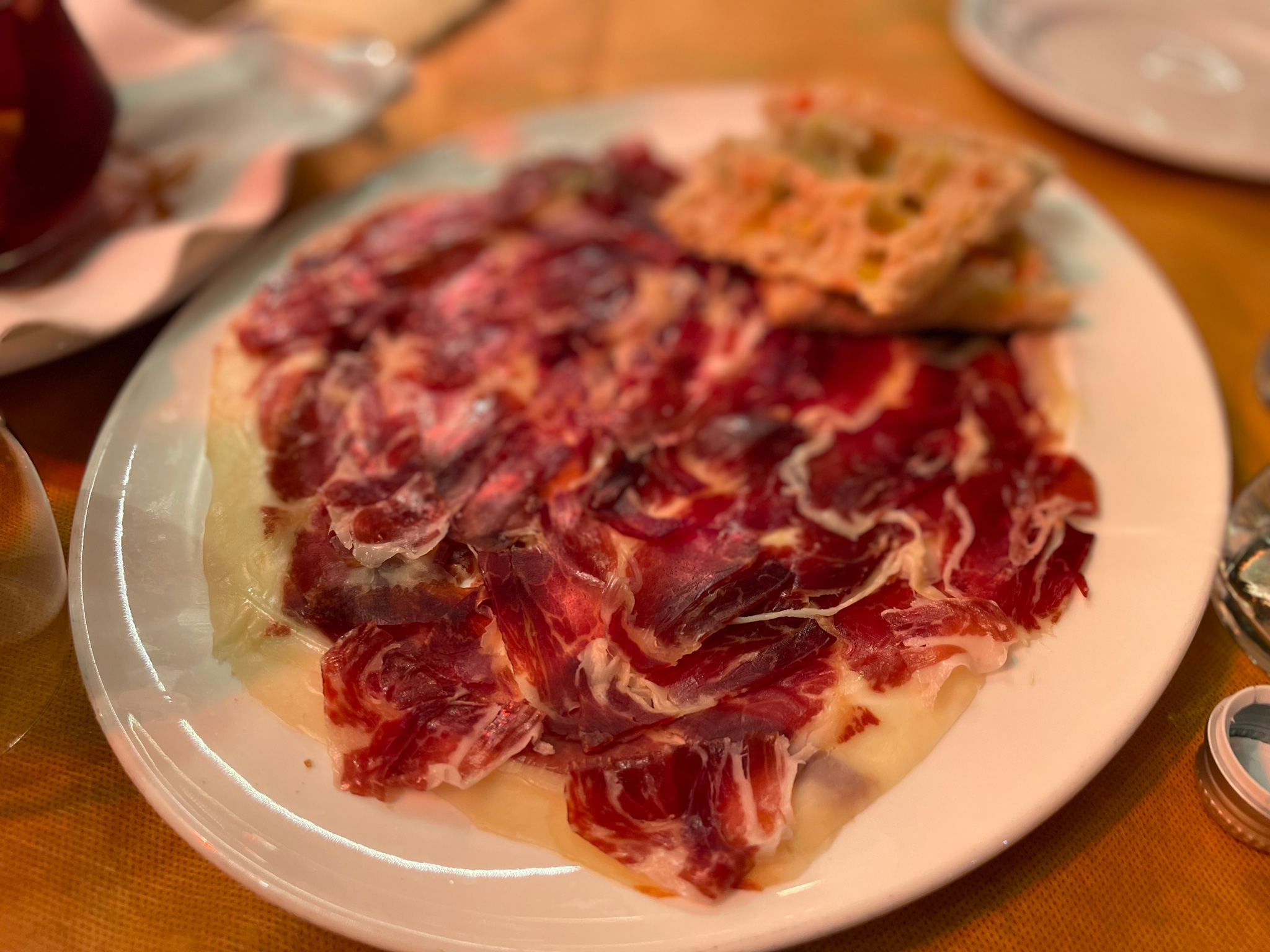 This was so delicious. The natural saltiness of the pork was just so appetising. I said to Marc that the beauty of Mediterranean food is its simplicity and the quality of the ingredients. The crispy bread that comes with it is called pa amb tomàquet and is prepared by rubbing the inside of a tomato on the bread and seasoning with salt and olive oil. Weirdly enough, the Catalans throw the tomato away after this, much to my shock, given that there's still a decent amount of tomato that can be used for other things, like a salsa or a sauce.