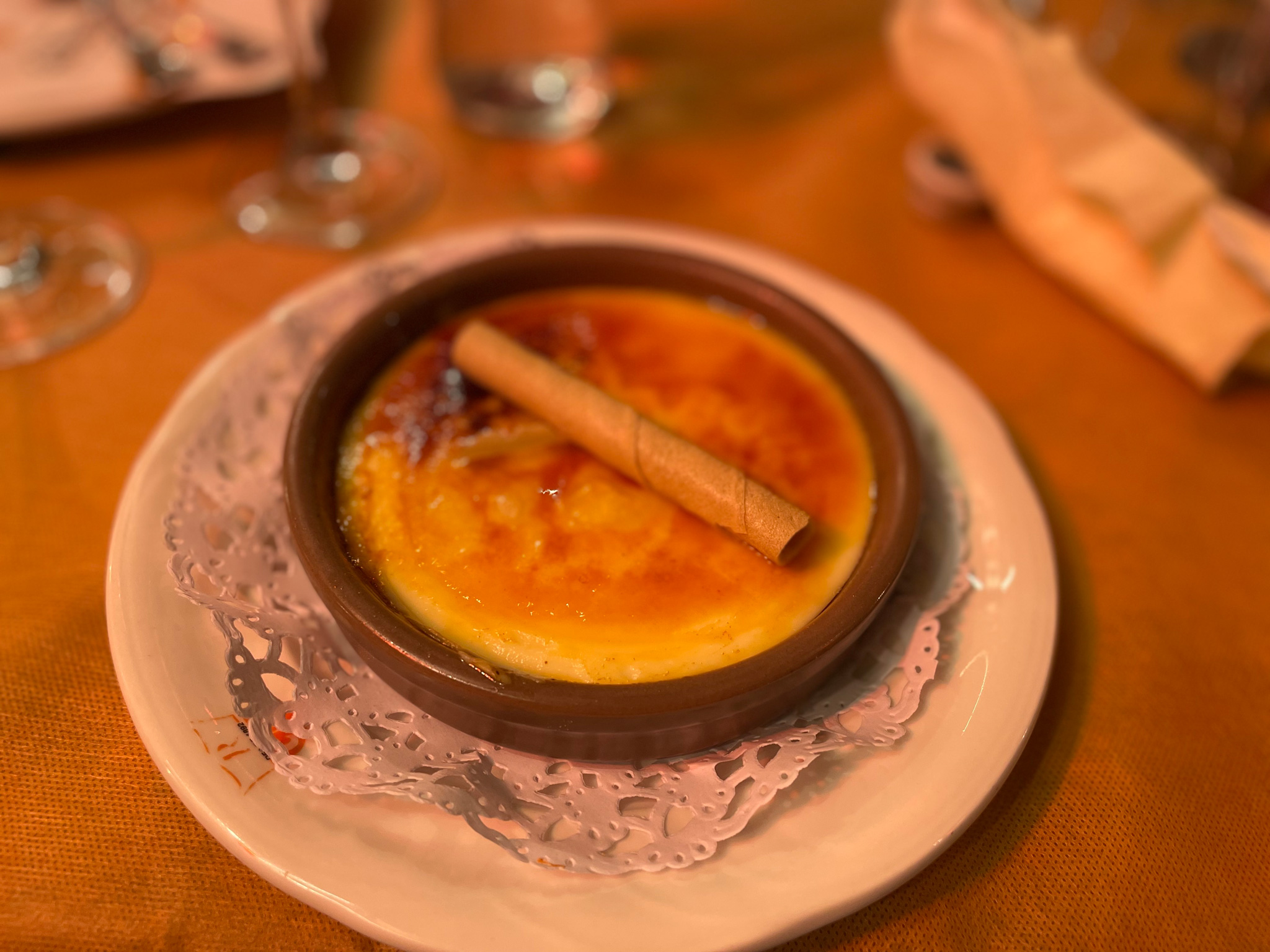 Catalonia’s version of creme brulee, this is very similar in taste but is more creamy in texture and doesn’t have that gelatinous feel to it. It’s one of the most famous desserts in Catalonia and I couldn’t pass up the opportunity to have it. I love that intense eggy custard flavour and I keep wanting more. The roll on the top is called a neula, and is often eaten with cava (Catalan sparkling wine) during Christmas.